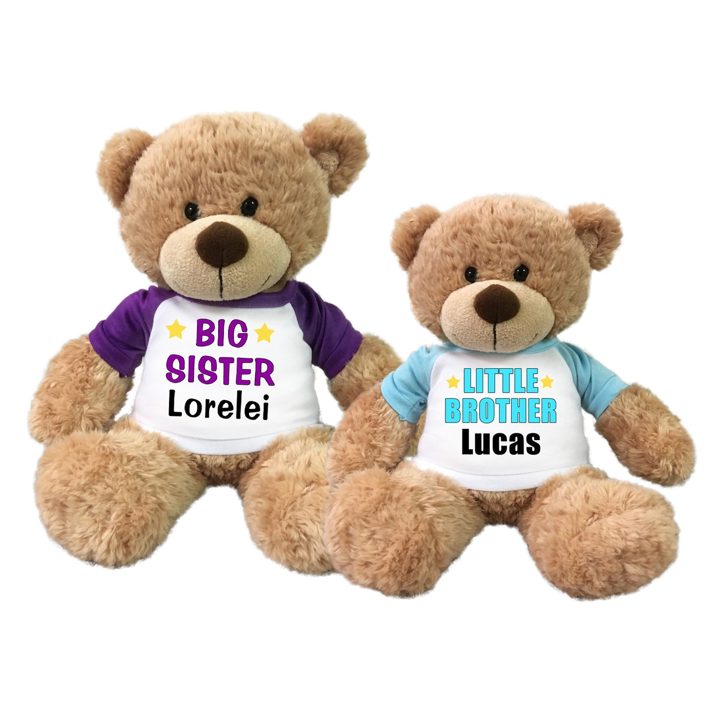Big Sister / Little Brother Personalized Teddy Bears - Set of 2 Bonny Bears (16 inch and 13 inch)