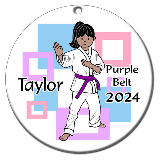 Martial Arts or Karate Kid Personalized Christmas Ornament - Girl