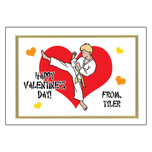 Karate or Martial Arts Valentines Cards - Kicking Boy Design