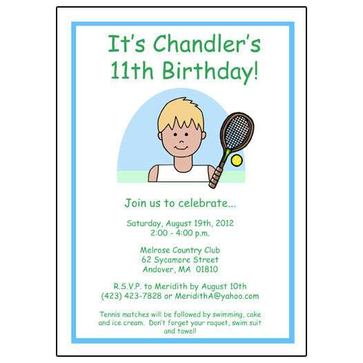 Tennis Kid Birthday Party Invitation - Boy