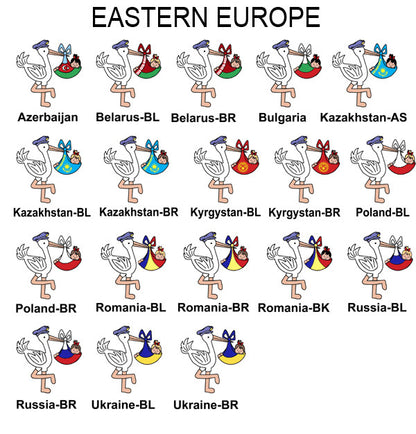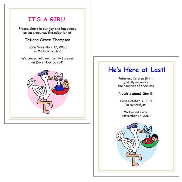 Adoption Announcements - Stork Carrying Baby Girl or Boy from Eastern European Countries