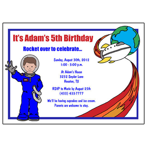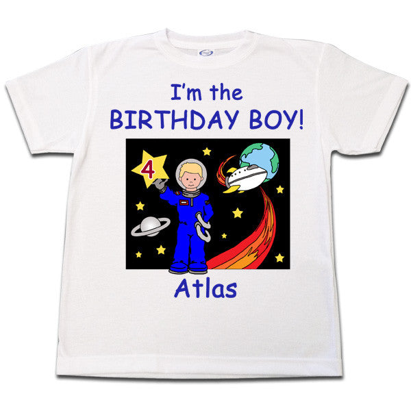 Any boy who loves outer space will enjoy wearing this personalized birthday T shirt with our Astronaut theme. Choose from 9 boys with different skin & hair colors and personalize the shirt with your child's name and age. A great way to make the birthday boy feel special on his big day.