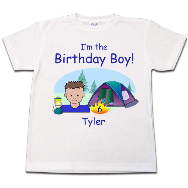 Create a special personalized birthday T shirt for your child to wear to his birthday campout or camping trip. Choose any of our cartoon boys with any skin or hair color and personalize the shirt with your child's name and age. Sure to make the birthday boy feel extra proud.