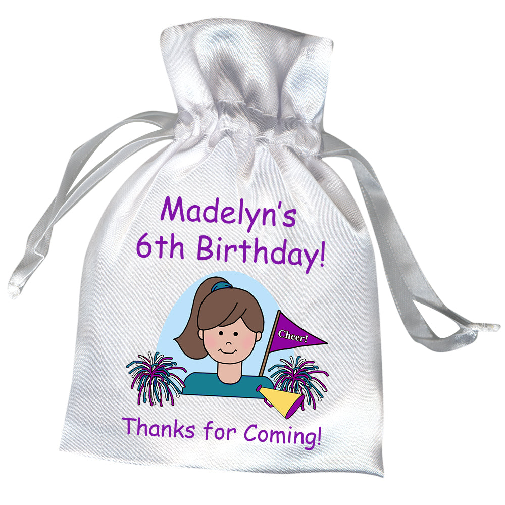 Choose any one of our cartoon kids to resemble your child to create special favor bags for your cheerleading party or as gifts for the cheerleaders on your team. Customize the color scheme to match your team and personalized it with 2 lines of text. Price shown is per bag and includes your personalized printing.