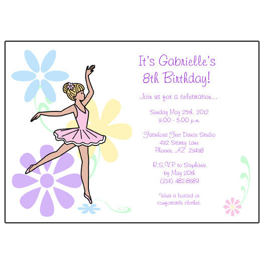 Ballet or Dance Birthday Party Invitation - Dainty Floral Ballerina