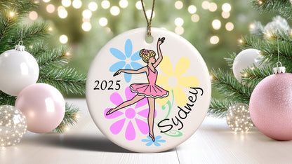 Ballet or Dance Christmas Ornament - Dainty Floral Ballerina
