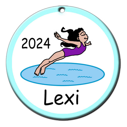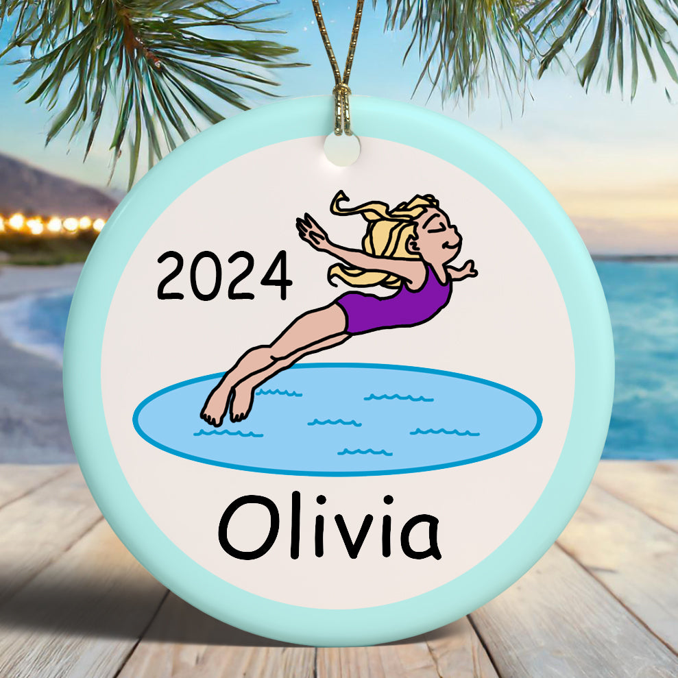 Diving or Swimming Personalized Christmas Ornament - Girl