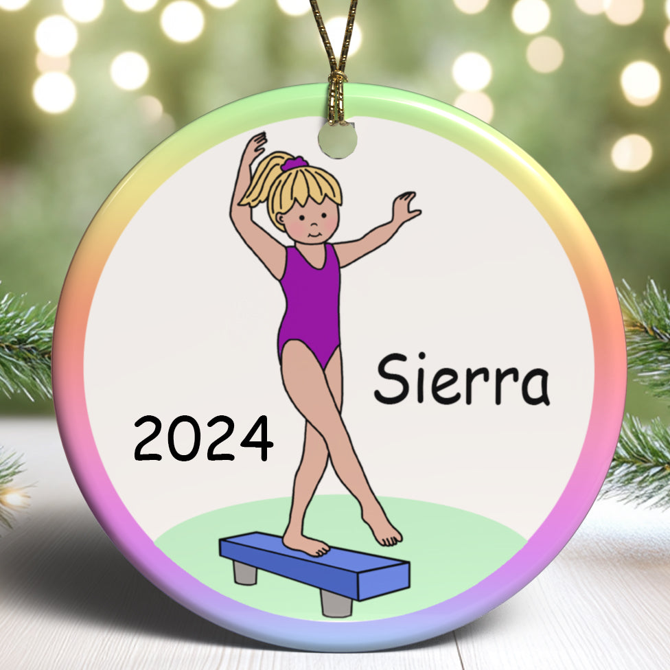 Gymnastics Christmas Ornament - Girl on Beam Design