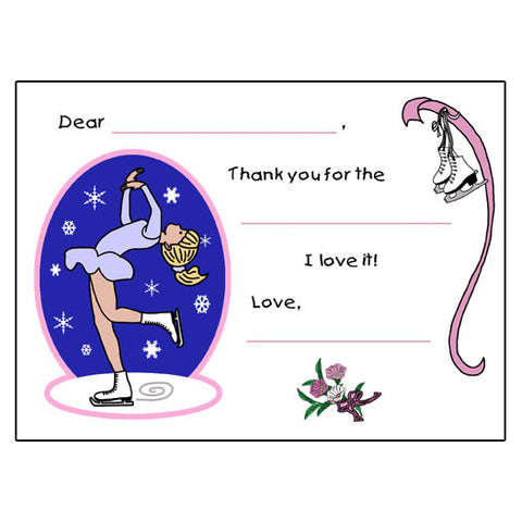 Ice Skating Fill in the Blank Thank You Notes - Dainty Swirl Skater