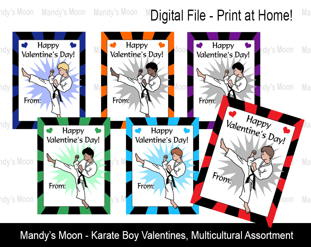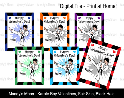 Karate Boy Valentine Cards - Digital Print at Home Valentines cards, Instant Download