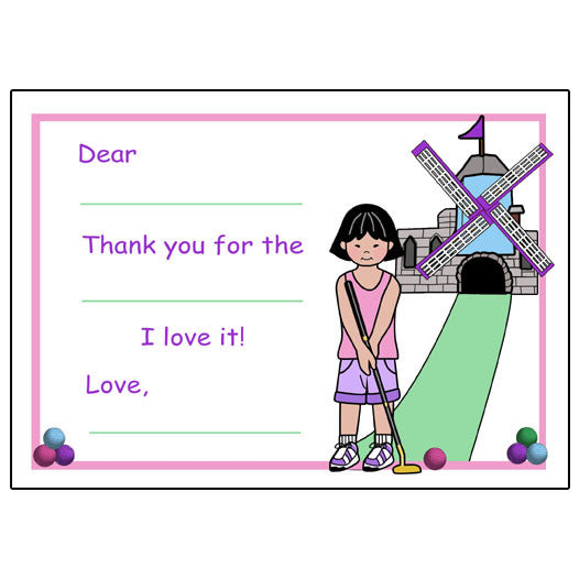 Mini Golf Fill in the Blank Thank You Notes (Design 2) - Girl