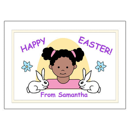 Wish a special someone a Happy Easter with this adorable cuddly stuffed bunny rabbit. 11" Tan Mopsy bunny will arrive wearing a white T-shirt with a cute design featuring a bunny with flowers behind it, personalized with any heading on top and a name below the design to make an extra special Easter gift.