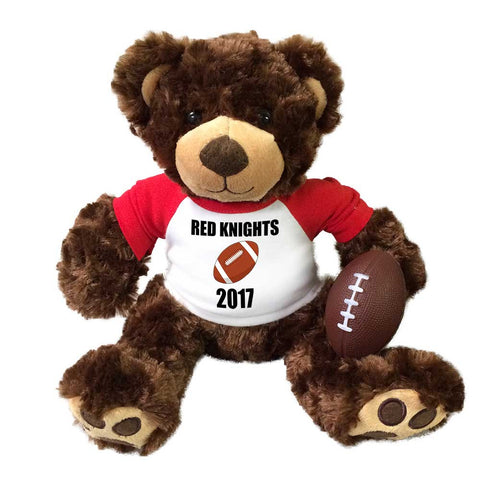 Looking for the perfect gift for your favorite football player? Or end of season gifts for the team? A football teddy bear dressed in team colors, personalized with team name, name, and number on the back, is sure to be a huge hit.