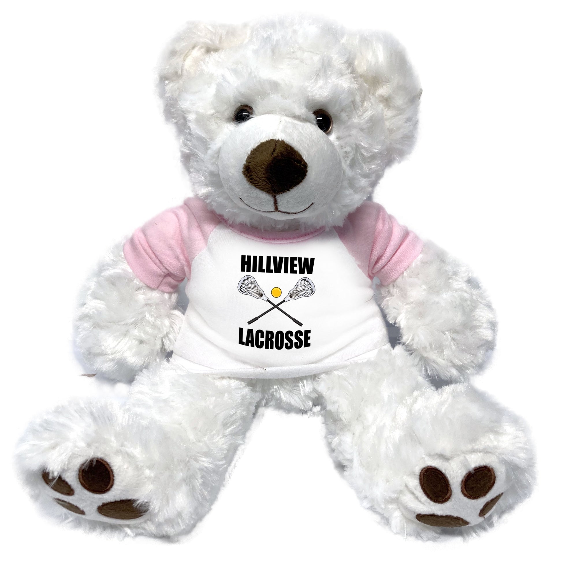 Personalized Lacrosse Teddy Bear - 13" Pearly White Vera Bear