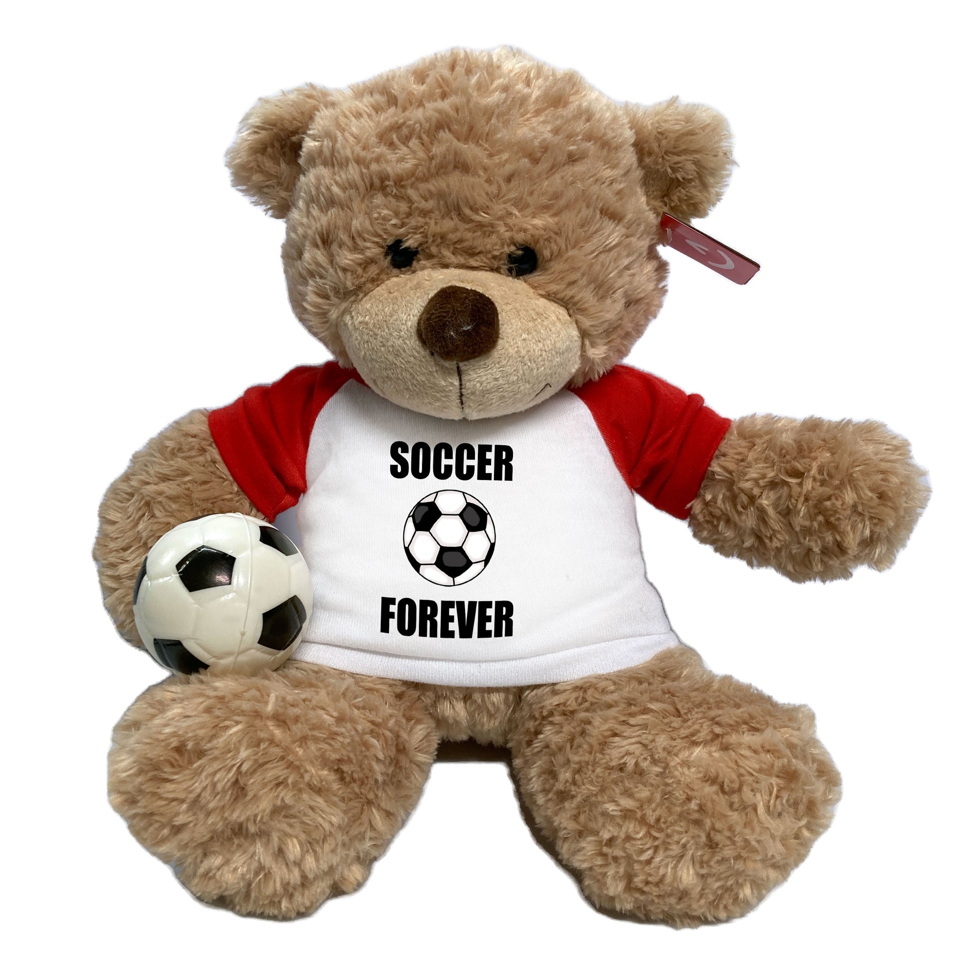 Looking for the perfect gift for your favorite soccer player? Or end of season gifts for the team? A soccer teddy bear dressed in team colors, personalized with team name, name, and number on the back, is sure to be a huge hit.