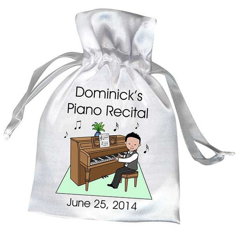 Personalized piano boy bag tag is perfect for identifying music bags, backpacks or luggage. Great piano recital gift! Choose from 9 piano playing boys with different skin and hair colors. Back side of the bag tag is custom printed with your name, address, and phone #. 4" x 3" durable thick plastic tag, rubber strap included.Share