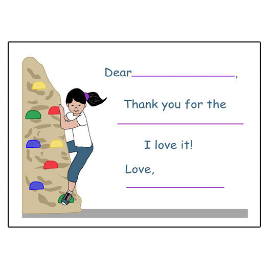 Rock Climbing Fill in the Blank Thank You Notes - Girl