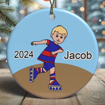 Roller Skating Boy Personalized Christmas Ornament