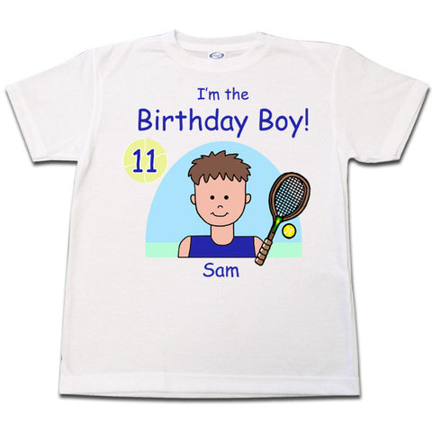 Create a special birthday T shirt for any kid who loves tennis! Choose any one of our cartoon girls with any skin or hair color and personalize the shirt with your child's name and age. Perfect for wearing to your tennis theme birthday party.