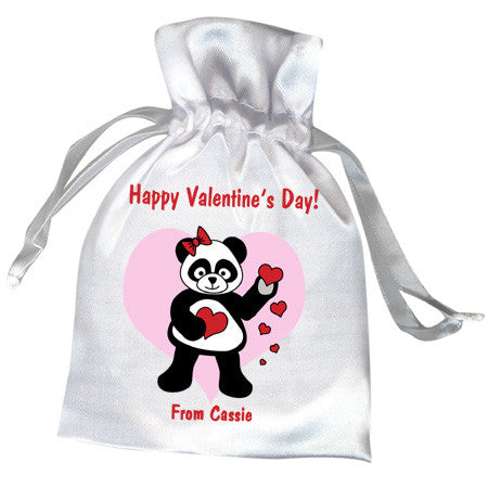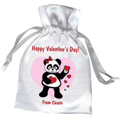 Delight your party guests with satin drawstring favor bags featuring our adorable Love panda with hearts. Personalize it with your own special message & name or date.