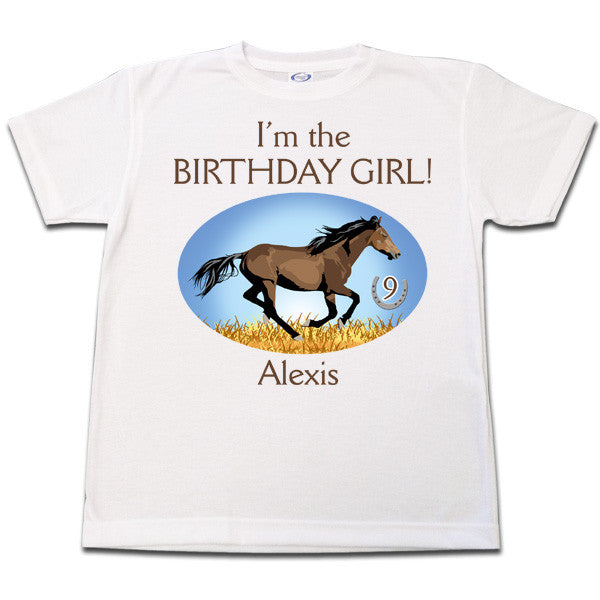 Any child who loves horses will love this personalized birthday T shirt featuring our wild horse design. Personalize your shirt with your child's name and age. Perfect for wearing to your horseback riding birthday party. Available in adult or child sizes.